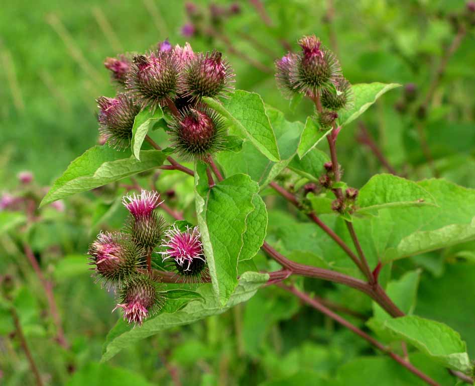 نام های رایج: little burdock, louse-bur, button-bur, cuckoo-button, or wild rhubarb